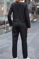 Discover a matching set that blends comfort and sophistication effortlessly. Say goodbye to stiff, itchy fabrics and constant ironing, this set keeps you looking polished with minimal effort. Designed for the modern woman, it offers breathability, a sleek monochrome look, and versatility for any occasion. Elevate your wardrobe with a timeless piece that moves with you!